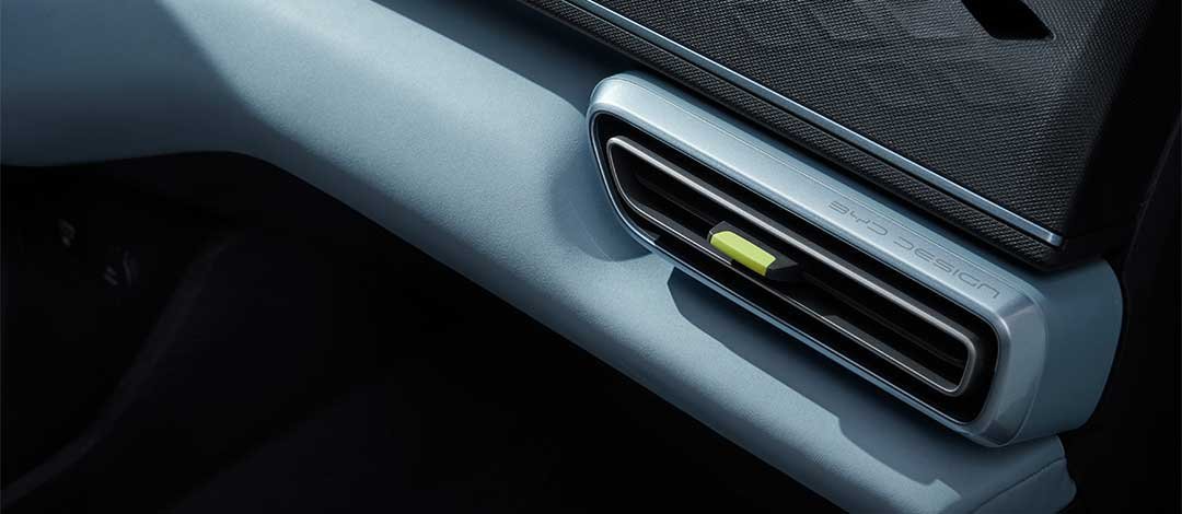 Ventilasi AC pada BYD Atto 1 dirancang dengan garis tegas dan aksen warna bergaya “cyberpunk” yang mencolok, memberikan nuansa futuristik sekaligus memancarkan karakter energik dan modern di dalam kabin.